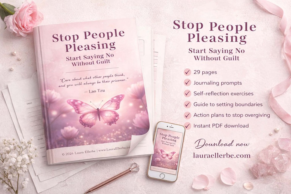 The Stop People Pleasing Workbook is your step-by-step guide to stop over-giving, start honoring your own needs, and build healthier, guilt-free boundaries.